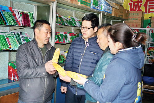 2月13日,原平市宇峰種業(yè)的農(nóng)技人員正在為前來購買種子的人們講解各種種子對土壤的適應(yīng)性和如何提高種植產(chǎn)量。目前該市農(nóng)民們已經(jīng)開始購買化肥、種子、農(nóng)機具等,為今年春耕做準備。(趙春曉 攝)