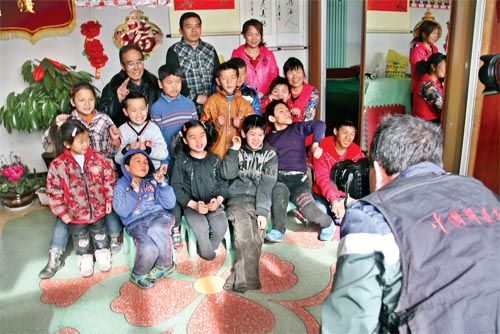 近日,原平市文明辦、市文聯(lián)組織攝影愛好者下基層開展“迎春送祝?!被顒?dòng),對全市模范、身邊好人進(jìn)行了走訪慰問,并為他們拍攝了全家福照片。圖為攝影愛好者為2014年中國好人、山西省第四屆道德模范陳天文、郭改然夫婦免費(fèi)拍攝全家福照片。(褚震 攝)