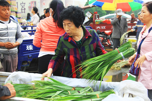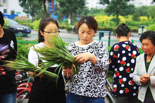 6月5日,傳統(tǒng)佳節(jié)端午節(jié)臨近,原平市民一大早就到市場(chǎng)上購(gòu)買(mǎi)粽葉??吹矫考倚偵隙紨D滿了前來(lái)購(gòu)買(mǎi)粽葉的市民。一捆捆翠綠的粽葉整齊地?cái)[放著,還散發(fā)著粽葉特有的清香味。銷(xiāo)售粽葉的攤販忙著招待顧客,銷(xiāo)售場(chǎng)面十分火爆。(吉建平 攝)