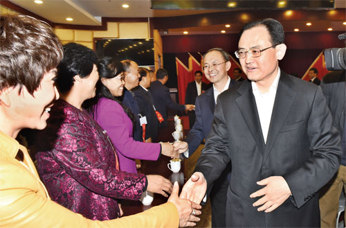 10月12日晚,市委書記李俊明、市長(zhǎng)鄭連生等市領(lǐng)導(dǎo)到駐地看望參加市政協(xié)四屆一次會(huì)議的委員。(本報(bào)記者 馮曉磊 范濤 攝)
