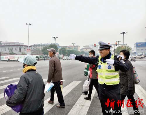 圖一:10 月15 日,交警在七一路與長征街十字路口指揮交通 圖二:交警攙扶老人過馬路