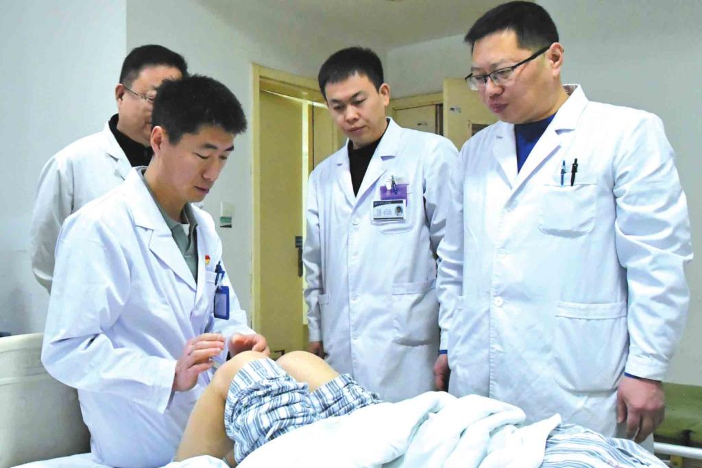 我市與山西醫(yī)科大學(xué)第一醫(yī)院簽署合作共建忻州市人民醫(yī)院框架協(xié)議以來,省級(jí)專家下沉坐診已成常態(tài)。圖為山西醫(yī)科大學(xué)第一醫(yī)院常駐專家、骨科主任韓永斌在市人民醫(yī)院骨科病房查看患者腿部術(shù)后情況。(李潤(rùn)攝)