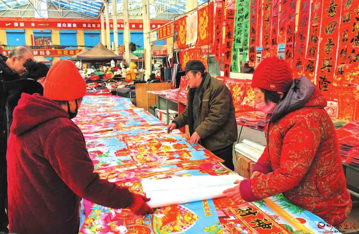 春節(jié)臨近,神池縣集貿(mào)市場(chǎng)迎來(lái)購(gòu)銷(xiāo)兩旺的高峰期,處處洋溢著喜慶祥和的節(jié)日氛圍。圖為春聯(lián)年畫(huà)攤位前,市民正在精心挑選心儀的年貨。(鄭志東 攝)