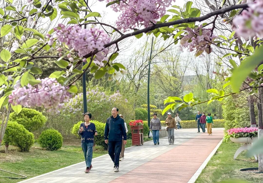 移步城中各大公共空間,更是一步一景:體育公園的桃杏花層層疊疊,迎來(lái)最佳觀賞期,粉白色的花瓣綴滿枝椏,與跑道上奔跑的身影相映成趣;人民公園的玉蘭花、碧桃、西府海棠次第開(kāi)放,映著湖面的波光,岸邊垂柳抽出新綠,與繁花共同構(gòu)成層次豐富的春日?qǐng)D景;遺山公園里,山桃、丁香香氣彌漫,市民三五成群,沿著步道悠然散步;古城西園的花開(kāi)得繁盛熱烈,朱紅的古建檐角襯著艷而不俗的花簇,盡顯晉北古城的春日風(fēng)韻;作為城市生態(tài)名片的云中河景區(qū),步道兩側(cè)的繁花映水,偶有水鳥(niǎo)掠過(guò)水面,漾出一岸花影。