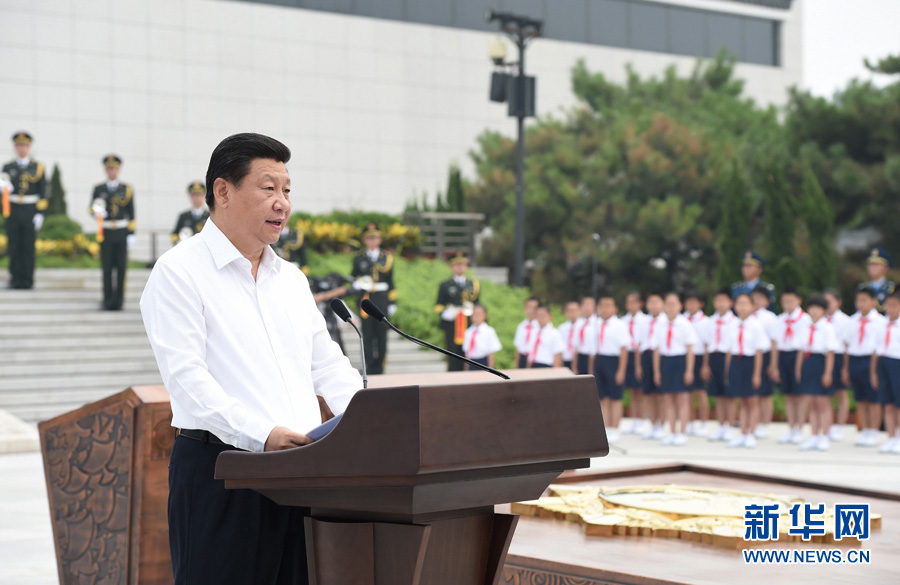 2014年7月7日,首都各界在中國(guó)人民抗日戰(zhàn)爭(zhēng)紀(jì)念館隆重集會(huì),紀(jì)念全民族抗戰(zhàn)爆發(fā)77周年。習(xí)近平出席紀(jì)念儀式并發(fā)表重要講話。新華社記者 馬占成 攝