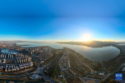 12月10日拍攝的滇池一景(無人機(jī)全景照片)。(新華社記者 彭奕凱 攝)