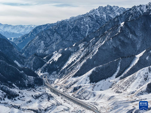 這是新疆烏尉高速公路前峽1號(hào)隧道及附近路段(12月20日攝,無(wú)人機(jī)照片)。(新華社記者 胡虎虎 攝)