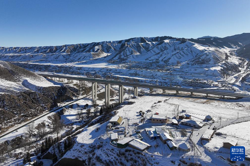 在新疆烏魯木齊縣拍攝的烏尉高速公路(12月23日攝,無(wú)人機(jī)照片)。(新華社記者 王菲 攝)