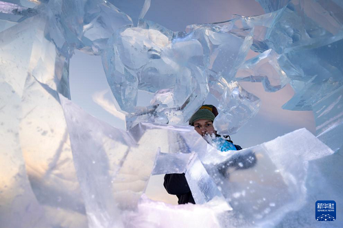 1月3日,參賽選手在哈爾濱冰雪大世界園區(qū)內(nèi)進(jìn)行冰雕創(chuàng)作。(新華社記者 張濤 攝)