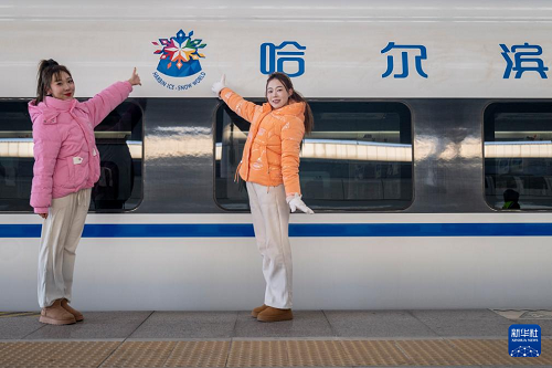 1月4日,首列“哈爾濱冰雪大世界”主題高鐵列車G1276在哈爾濱西站正式開行,駛向終點站武漢。據(jù)悉,“哈爾濱冰雪大世界”主題高鐵列車內(nèi)外遍布冰雪大世界相關(guān)元素,成為流動的名片,助力冰雪經(jīng)濟融合升溫。