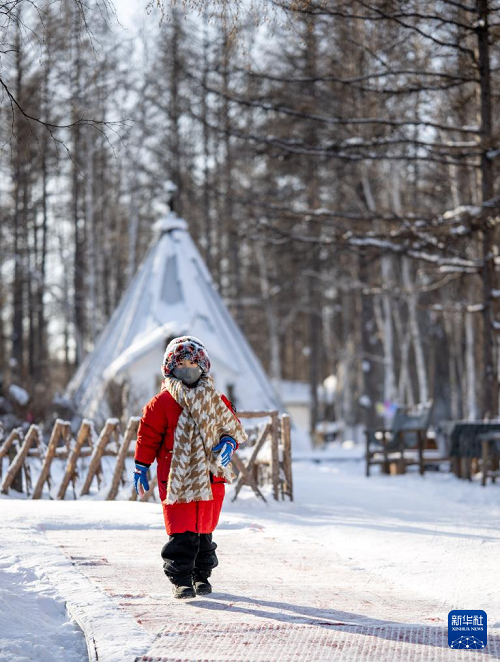 1月15日,一名小游客在根河市敖魯古雅鄂溫克民族鄉(xiāng)游玩。(新華社記者 連振 攝)
