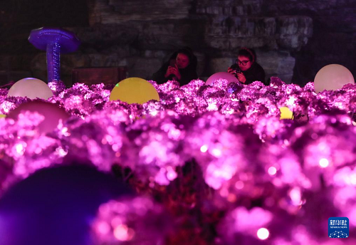 1月24日,游客在觀看主題燈飾。(新華社記者 單宇琦 攝)