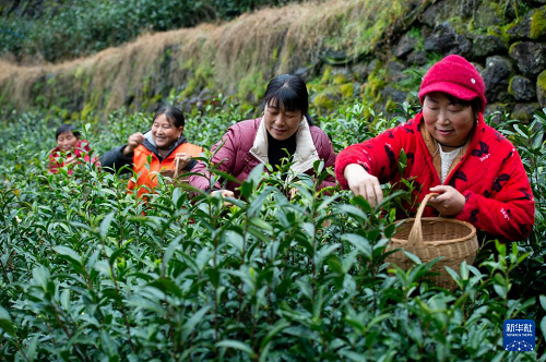1月29日,湖北省秭歸縣郭家壩鎮(zhèn)王家?guī)X村茶農(nóng)在“絲綿茶1號(hào)”茶園采摘茶葉嫩芽。(新華社發(fā) 雷勇 攝)