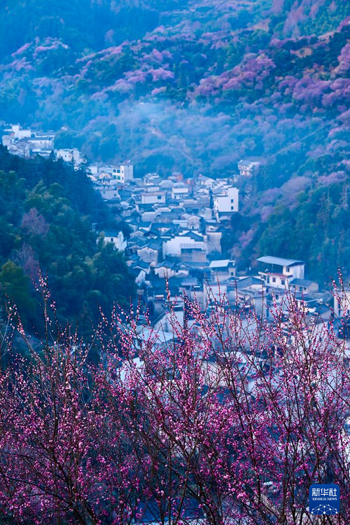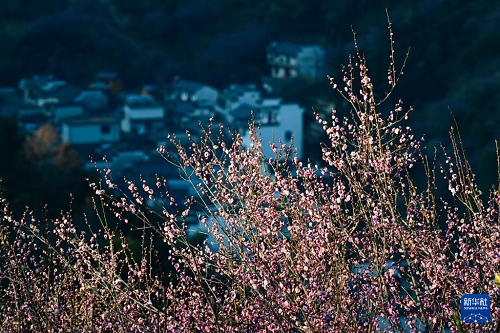 近日,在安徽省黃山市歙縣雄村鎮(zhèn)賣花漁村,漫山遍野的梅花綻放,花海與徽派村落民居相映成趣,景美如畫。