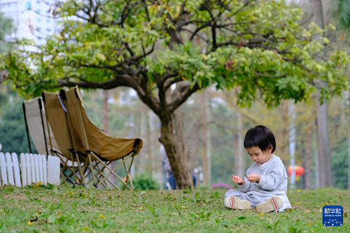 2月23日,一名小朋友在廣西南寧市南湖邊綠地上玩耍。(新華社記者 陸波岸 攝)