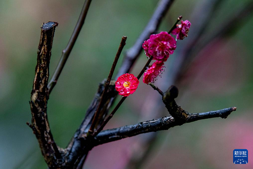 這是3月1日在江蘇省泰州市梅蘭芳公園內(nèi)拍攝的雨后梅花。(新華社發(fā) 楊玉崗 攝)