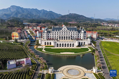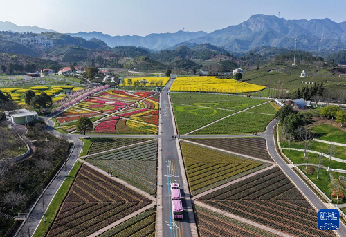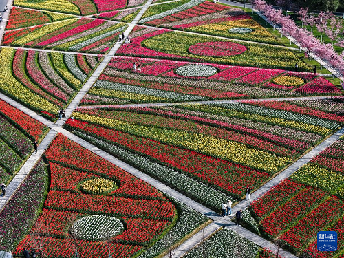 空中俯瞰花田美地景區(qū)(3月10日攝,無(wú)人機(jī)照片)。(新華社記者 徐昱 攝)