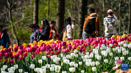 近日,貴州省黔南布依族苗族自治州龍里縣龍架山國家森林公園內(nèi)的數(shù)萬株郁金香競相綻放,吸引各地游客前來游玩賞景。