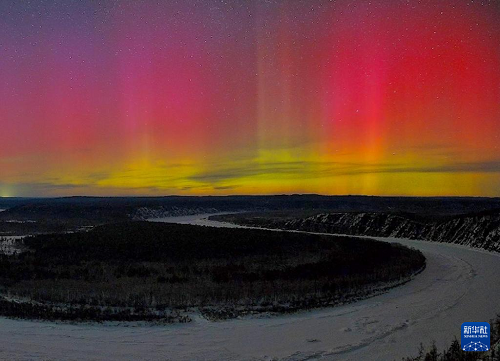 這是3月22日在黑龍江省大興安嶺地區(qū)圖強(qiáng)林業(yè)局龍江第一灣景區(qū)拍攝的絢麗極光。新華社發(fā)