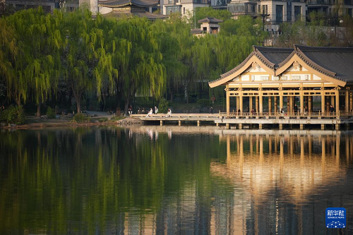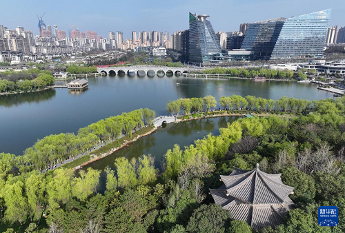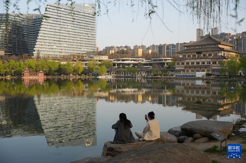 西安曲江池遺址公園景色(3月24日攝)。(新華社記者 邵瑞 攝)