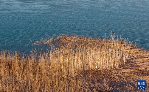 3月25日,一只白鷺在烏海湖覓食(無(wú)人機(jī)照片)。(新華社記者 連振 攝)