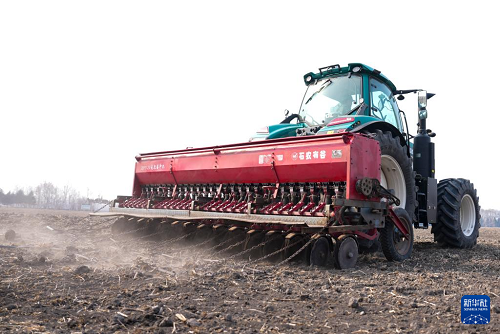 3月25日,播種機(jī)在位于黑龍江省哈爾濱市的北大荒集團(tuán)閆家崗農(nóng)場(chǎng)有限公司一處耕地上根據(jù)設(shè)定程序播種小麥。(新華社記者 王松 攝)