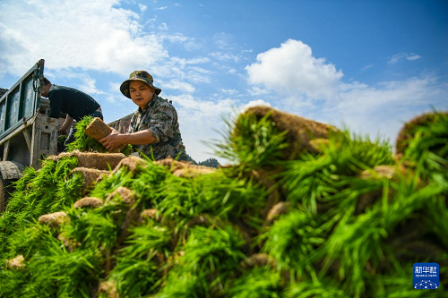 4月1日,在湖南省常寧市蘭江鄉(xiāng)景星村,農(nóng)民轉(zhuǎn)運(yùn)早稻秧苗。(新華社發(fā) 周秀魚春 攝)