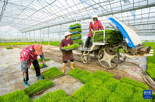 4月1日,農(nóng)民在江西省九江市都昌縣蔡嶺鎮(zhèn)楊灣村育秧基地起運(yùn)秧苗,準(zhǔn)備機(jī)插早稻。(新華社發(fā) 傅建斌 攝)