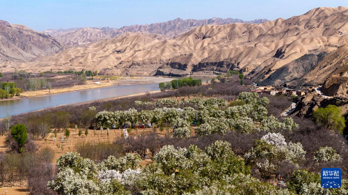 春日的寧夏中衛(wèi)市南長(zhǎng)灘村,黃河水蜿蜒流淌,岸邊綠芽初綻,村里梨花競(jìng)相開(kāi)放,勾勒出一幅生機(jī)盎然的黃河春景圖。