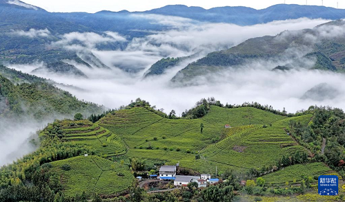 4月12日拍攝的浙江省臺州市仙居縣橫溪鎮(zhèn)陽峰山生態(tài)茶園(無人機照片)。(新華社發(fā) 王華斌 攝)