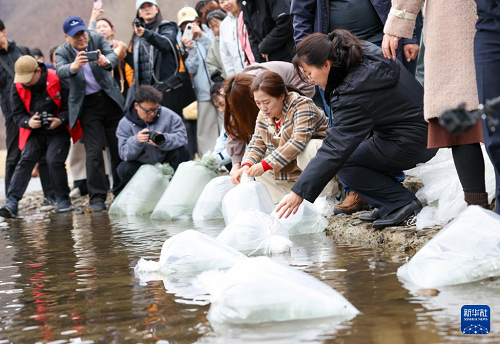 4月15日,吉林省2026年圖們江水生生物資源增殖放流活動在琿春市密江河大麻哈魚國家級水產(chǎn)種質資源保護區(qū)舉行,共放流大麻哈魚52萬尾、馬蘇大麻哈魚8萬尾。魚苗均經(jīng)嚴格檢疫、計數(shù),并由公證機構現(xiàn)場公證。