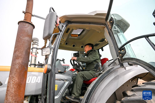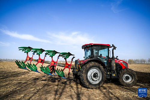 4月19日,在通遼市科爾沁左翼后旗甘旗卡鎮(zhèn),農(nóng)機手駕駛農(nóng)機翻地。(新華社記者 連振 攝)