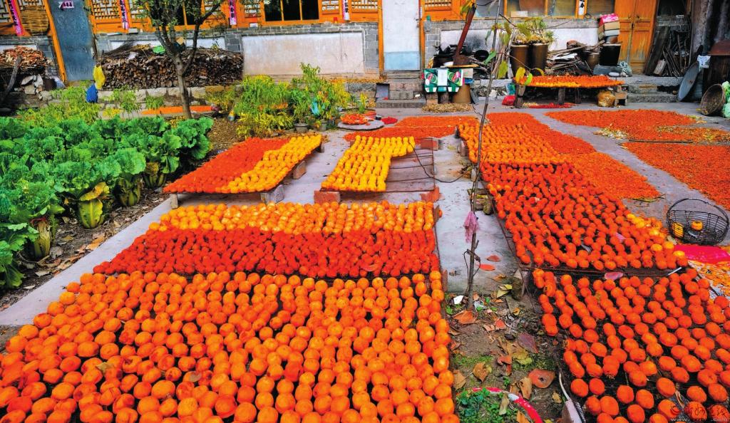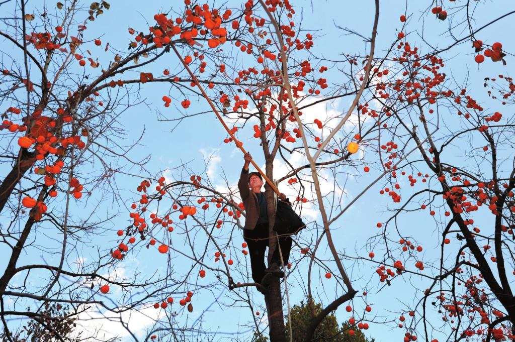 這個季節(jié),東峪便成為網(wǎng)紅打卡地,吸引了遠近無數(shù)的游人。這樣的美景,最宜天晴時靜賞,紅柿,藍天,冷暖相宜,濃淡有致,組成了一幅絕美的秋韻圖。這個季節(jié),也是農戶的豐收季,一家人都出動,把柿子摘下,在院子里晾曬,滿院子甘甜美味,是煙火人間里最真切的幸福,心里也會生出喜悅和希望。(本報記者 聶艷英)