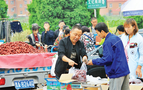 6月5日,原平市民正在選購紅棗包粽子。眼下,猴年端午節(jié)即將來臨,原平市場洋溢著濃厚的節(jié)日氣氛,端午粽是必不可少的節(jié)日佳肴,家家戶戶購紅棗、黃米、粽葉,自己動手包粽子,歡歡喜喜過節(jié)日。(吉建平 攝)
