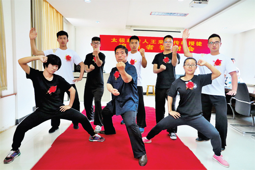 王來根對記者說:“中國太極功夫根在民間,作為民間拳師,當我看到新入門的弟子勤學苦練的時候,當我看到中國功夫受到高等學府和高層次人群重視的時候,我感覺自己多年來在傳拳授道方面的付出是值得的,中國功夫在民間永遠不會失傳。”圖為王來根師傅與弟子展演武術(魯明強)