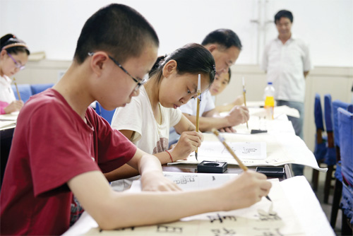 7 月17 日,在靜樂縣青少年文化活動中心,孩子們正在認(rèn)真練習(xí)書法。進(jìn)入暑期以來,該縣興趣特長班又火熱起來,學(xué)生們利用暑假時(shí)間投身于各自的興趣愛好之中,讓自己的假期變得更為充實(shí)、更有意義。(閆曉梅 攝)