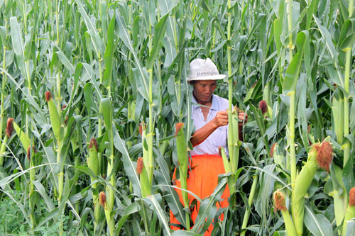 8月8日,原平市東野莊村農(nóng)民正在查看長(zhǎng)勢(shì)喜人,顆粒飽滿的玉米棒子,入秋,該市田野上大秋作物長(zhǎng)勢(shì)喜人,到處是一派豐收景象,農(nóng)民們高興地說,今年又是一個(gè)好年景好收成。(趙春曉 攝)
