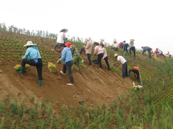 8月24日,河曲縣城北防護堤上植綠場面熱火朝天:數(shù)十名工人在堤上成排栽植爬地柏,坡面栽成菱形邊;菱形內(nèi)外栽植花草“三七景天”;園林綠化車輛跟進澆水。