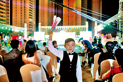月光皎潔,清輝遍灑,這夜雖是農(nóng)歷八月十三,月亮卻已迫不及待地圓了起來。花好月圓、春花秋月、花前月下……月宮是神話中的仙境,而此時泛華酒店的后花園里也如仙境一般,琴、詩、書法共同演繹《春江花月夜》,讓現(xiàn)場的500余名觀眾如癡如醉。面容清秀、刺繡大紅旗袍在身的琴師端坐在舞臺的左側(cè),雙手拂動,琴聲綿綿,舒心悅耳;鋪紙、執(zhí)筆、蘸墨、揮毫,舞臺中央的呂峰仿佛置身自家書房之中,墨香中三幅書法作品轉(zhuǎn)瞬完成;“醉眼看世界,朦朧看人生……李白醉了,醉了!”舞臺右側(cè)的朗誦者孫美琴將李白的一生揉碎在他的詩中,就著朦朧的月色,用獨特的聲線摻在她的情感中,沉醉了自己,也迷醉了觀眾。