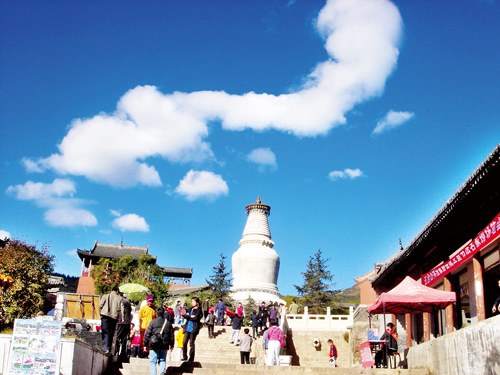 圖為游人在五臺(tái)山