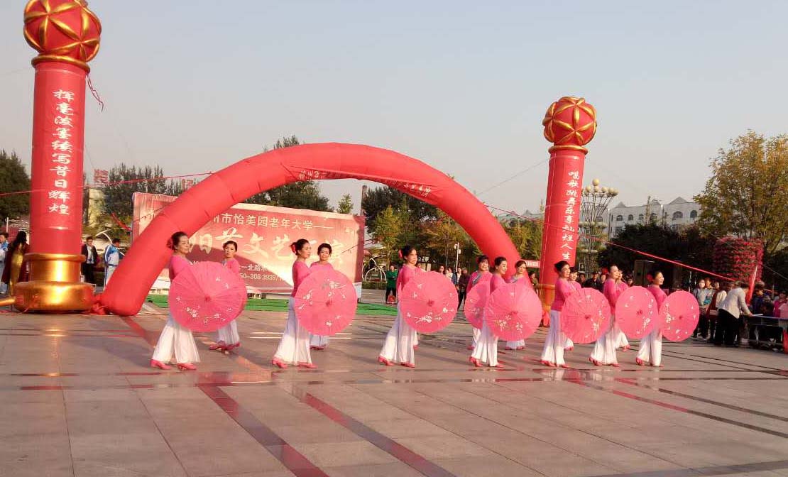 “唱歌跳舞樂(lè)享燦爛人生,揮毫潑墨續(xù)寫昔日輝煌?!睘榇罅霌P(yáng)中華民族尊老愛(ài)老的傳統(tǒng)美德,積極培育和踐行社會(huì)主義核心價(jià)值觀,營(yíng)造“敬老、尊賢、守孝”的濃厚氛圍。10月9日,農(nóng)歷九月初九“重陽(yáng)節(jié)”,忻州市怡美園老年大學(xué)在和平廣場(chǎng)舉辦了文藝匯演活動(dòng),以歌舞、演唱、小品、朗誦等表演為全市老年朋友送上節(jié)日祝福。