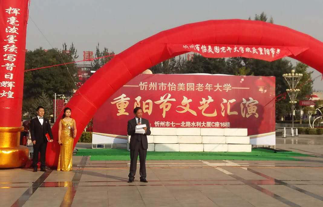 伴隨著怡美園老年大學(xué)全體學(xué)員共同表演的舞蹈《歡聚一堂》,忻州市怡美園老年大學(xué)校長(zhǎng)鄧九高代表該校全體師生對(duì)老年朋友們致以節(jié)日的慰問(wèn),在表達(dá)了提倡繼續(xù)發(fā)揚(yáng)尊老愛(ài)老的中華傳統(tǒng)美德,經(jīng)營(yíng)好自己的家庭,盡孝心、促和諧,為構(gòu)建美好和諧的社會(huì)氛圍貢獻(xiàn)力量的同時(shí),也對(duì)年輕人寄以希望,享受生命,感恩陽(yáng)光。