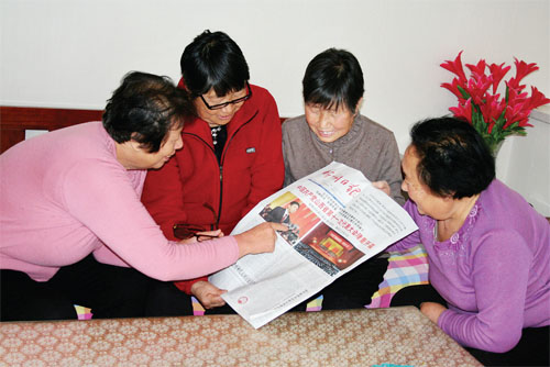 11月1日,原平市新華街村民蘇云香的家里左鄰右舍姐妹們正在暖意融融的家里一起通過報(bào)紙了解省十一次黨代會(huì)精神,她們看后高興地說,黨的政策越來越好,我們今后的生活會(huì)更加美好?。ㄚw春曉 攝)