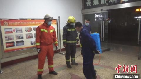 捕捉蝙蝠歸隊(duì)之后,所有消防員都接受殺菌消毒。 周洋 攝 同日21時(shí)許,一只蝙蝠飛行中撞在了靈石縣新建街一戶居民的紗窗門上無法動彈。因擔(dān)心蝙蝠攜帶病毒較多,居民不敢處置,當(dāng)即報(bào)警求助。