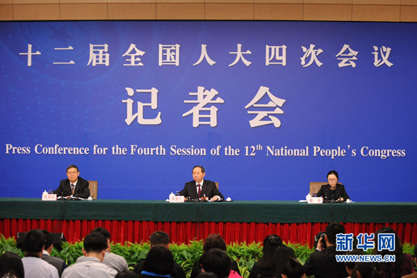 3月10日,十二屆全國(guó)人大四次會(huì)議新聞中心舉行記者會(huì),邀請(qǐng)教育部部長(zhǎng)袁貴仁就“教育改革和發(fā)展”的相關(guān)問(wèn)題回答中外記者的提問(wèn)。圖為記者會(huì)現(xiàn)場(chǎng)。新華網(wǎng)/中國(guó)政府網(wǎng) 陳杰 攝