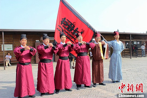 資料圖:西安漢服愛好者“習射”慶重陽。圖為漢服愛好者“習射”活動現(xiàn)場。王超 攝