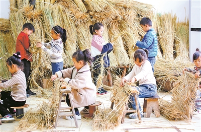 近日,江蘇如皋經(jīng)濟(jì)技術(shù)開發(fā)區(qū)實(shí)驗(yàn)幼兒園的小朋友在學(xué)習(xí)編草簾。大雪節(jié)氣剛過,該園開展知民俗,弘揚(yáng)傳統(tǒng)文化活動,教師帶領(lǐng)小朋友走進(jìn)田野,學(xué)習(xí)用秸稈編織草繩、草簾,用于包裹過冬果樹。