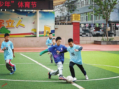 當天下午,太原市雙東小學(xué)的大課間鈴聲準時響起——“走,練射門去!”六年級學(xué)生張浩宇一把抓起足球,和隊友們直奔操場。上、下午各30分鐘的陽光大課間正有序開展,韻律操、武術(shù)操的音樂響徹校園。
