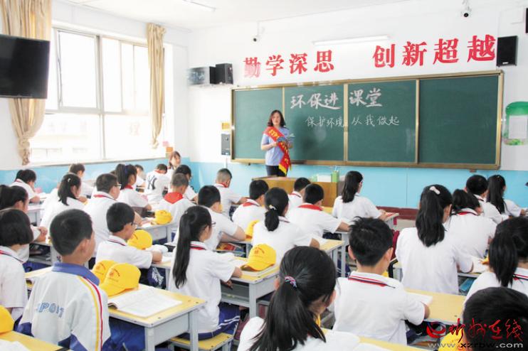 五臺(tái)縣實(shí)驗(yàn)小學(xué)以“勤學(xué)深思、創(chuàng)新超越”為教學(xué)方向,定期邀請忻州市生態(tài)環(huán)境局五臺(tái)分局的干部,登上講臺(tái)向?qū)W生講解《中華人民共和國環(huán)境保護(hù)法》和《日常環(huán)保知識(shí)解答》,潛移默化地增強(qiáng)學(xué)生的環(huán)保意識(shí),深受學(xué)生喜歡。圖為學(xué)生上環(huán)保課。金俊賢 攝
