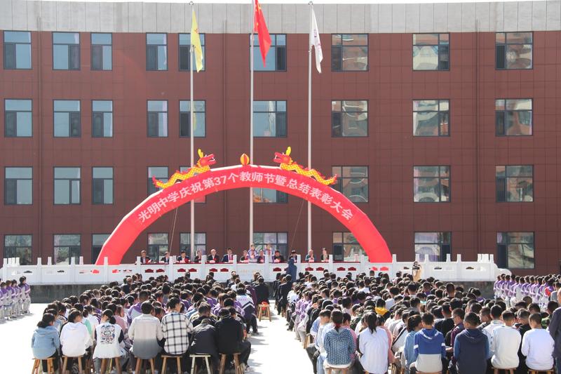 五寨縣光明中學(xué)網(wǎng)訊:金風(fēng)送爽,丹桂飄香。秋水蒹葭,不忘師恩。9月10日上午,五寨縣光明中學(xué)在校園廣場隆重舉行慶祝第37個教師節(jié)暨上學(xué)年度教育教學(xué)工作總結(jié)表彰大會。學(xué)校董事會60萬元重獎優(yōu)秀教師。全校師生喜氣洋洋參加大會。